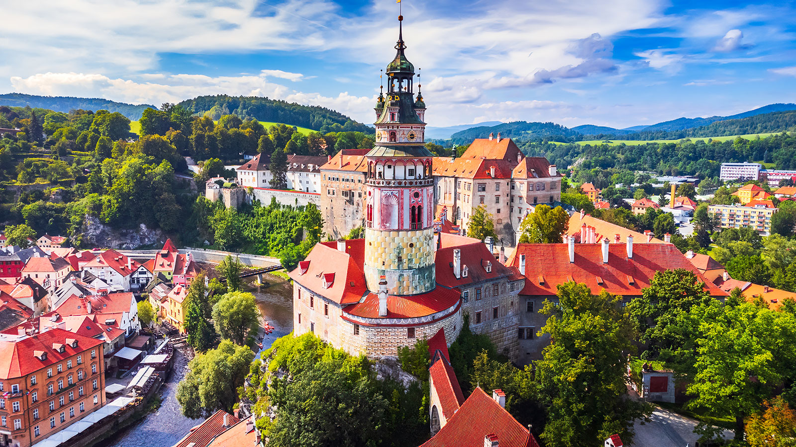 The destination is the magical town of Cesky Krumlov, which lies at the foot of the Sumava Mountains on the Vltava River.